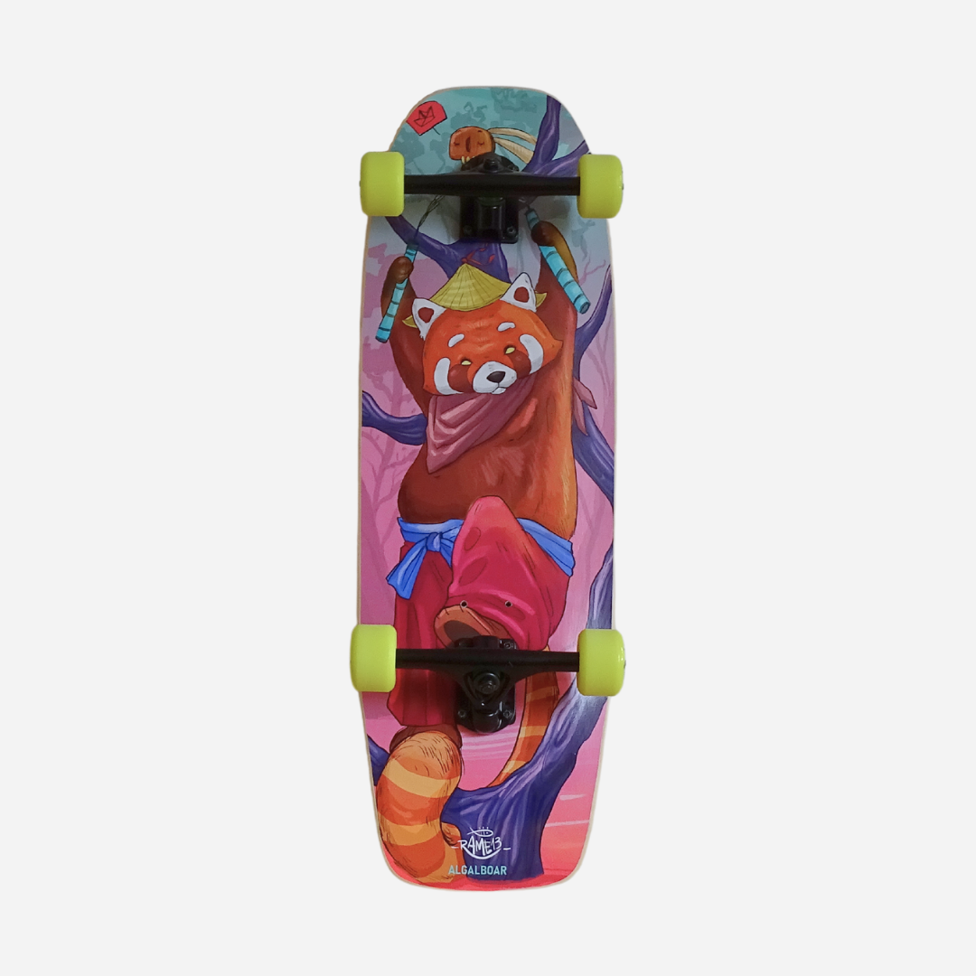 Il deck longboard Akay unisce stile e funzionalità in una tavola compatta e stabile, ideale per cruising e carving ampio. Realizzata in resistente acero e decorata con una grafica originale che raffigura un panda rosso in stile samurai, è una tavola che si fa notare. Il concave morbido è studiato per offrire massimo comfort durante la spinta e il controllo in curva, mentre il profilo double kick amplia le possibilità di manovra, anche nelle sessioni più tecniche.