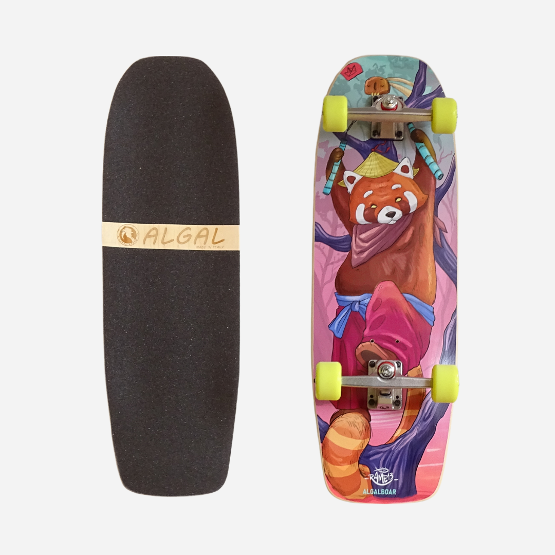 La Akay 31” unisce performance e stile in una tavola compatta, perfetta per carving e surfate urbane. Il design unico con un panda rosso samurai la rende un pezzo d’arte su ruote. Con ruote morbide swirl e truck reattivi, offre una guida fluida e precisa, adatta a ogni livello di rider.