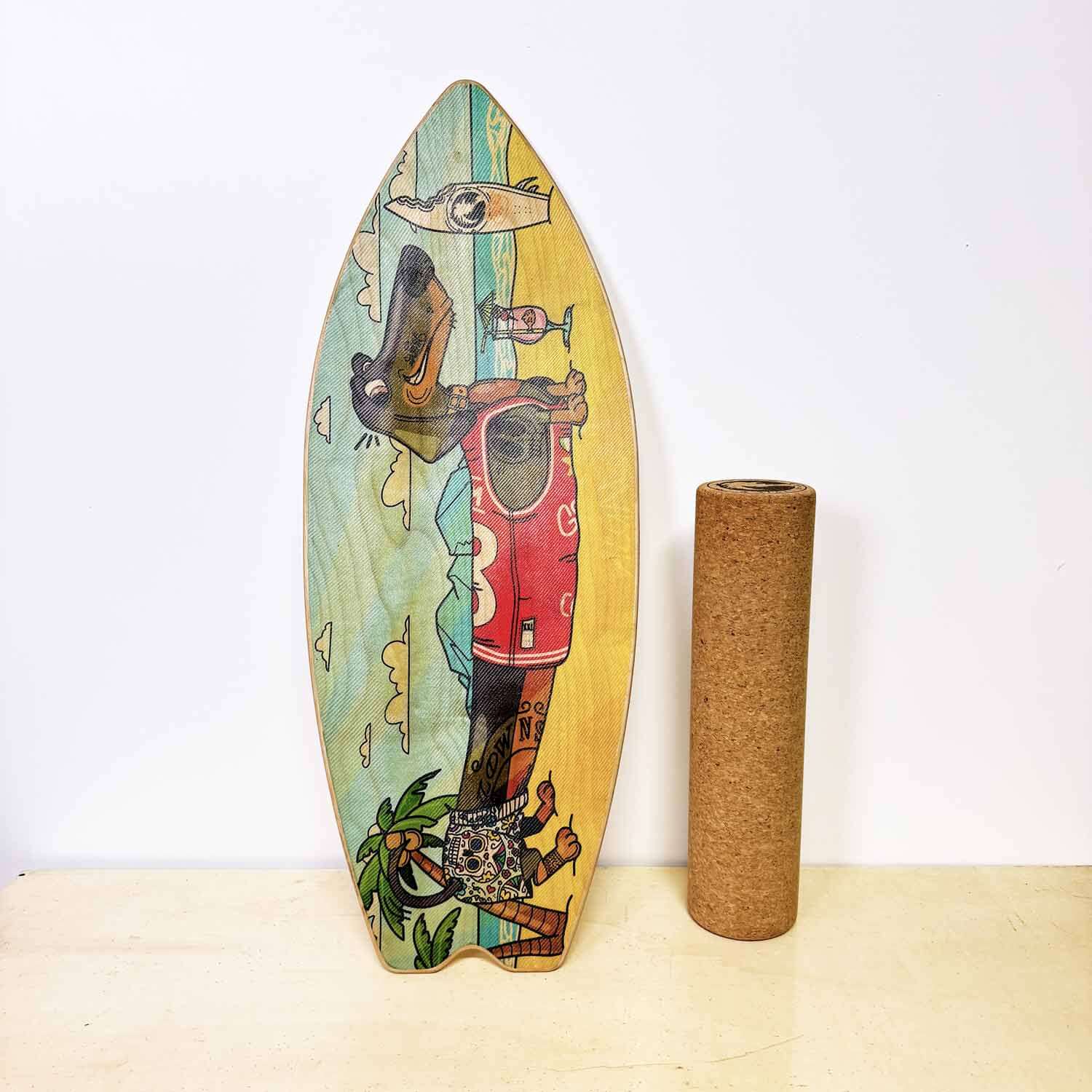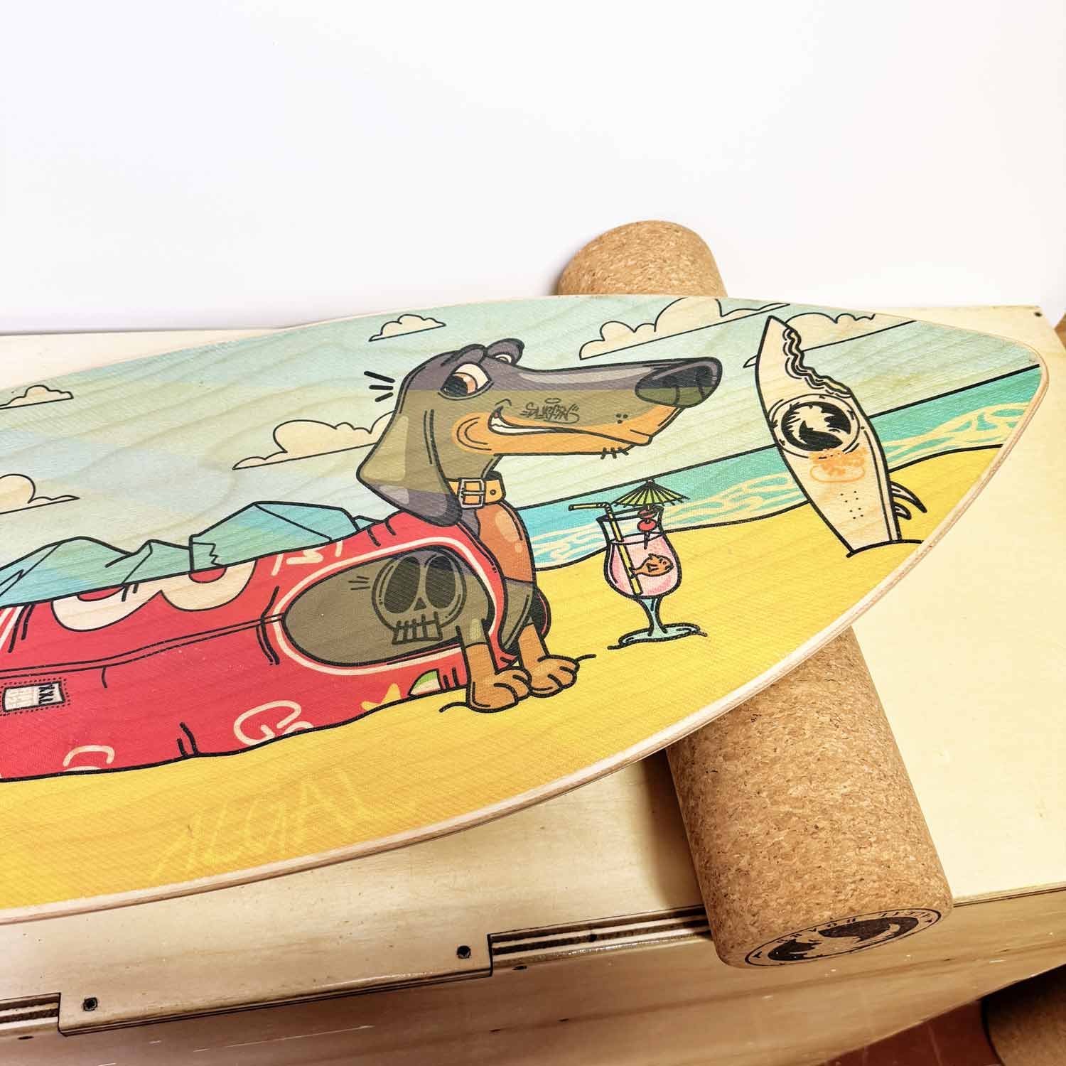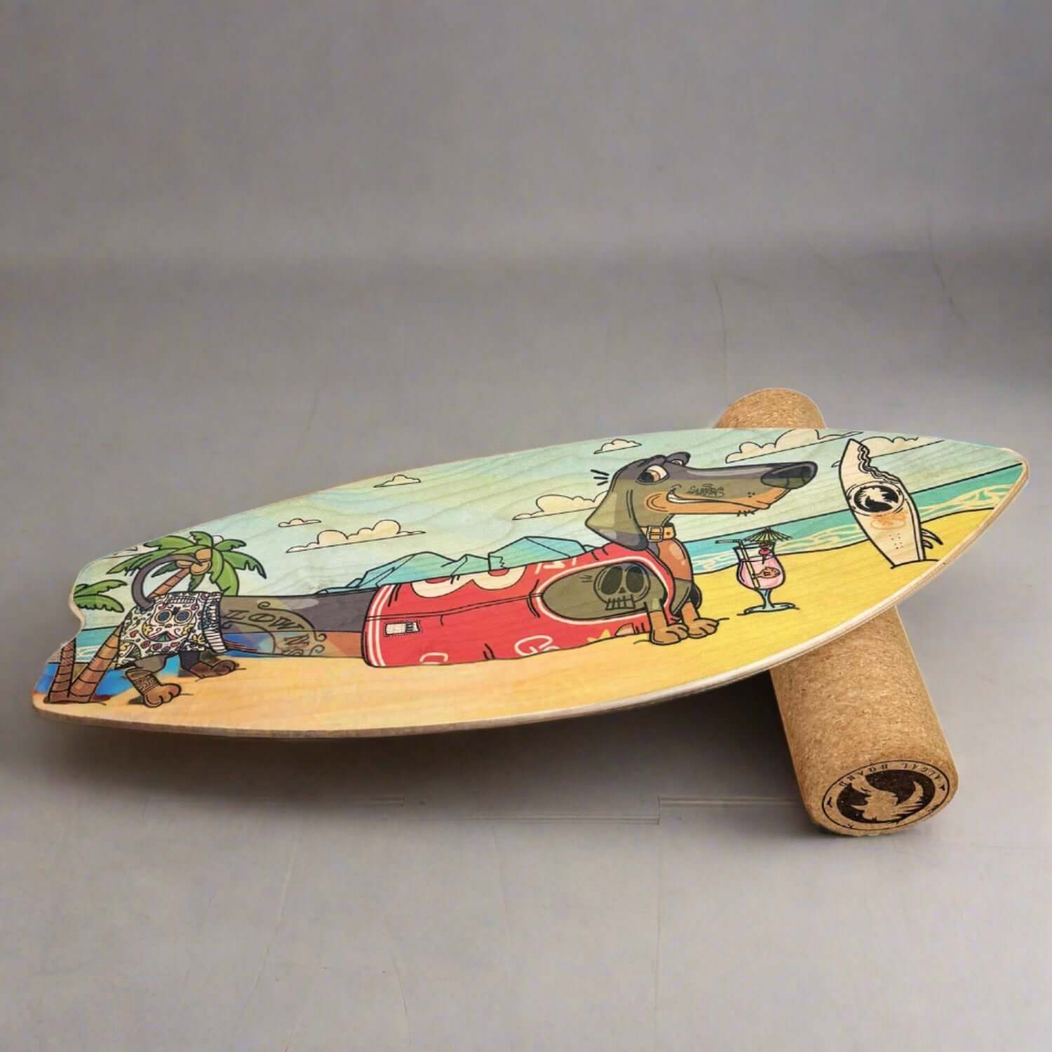 Scopri l'innovativa Balance Board con roker Sea Doggy 2024 di Algal Board, il perfetto compagno per migliorare il tuo equilibrio. Con una grafica adorabile che ritrae un cane bassotto su una spiaggia, questa balance board unisce stile e funzionalità. Realizzata artigianalmente in Italia con legno di faggio e acero, offre una superficie con fibra di vetro per un grip ottimale. Il rullo in sughero aggiunge una sfida in più con una importante attenzione all'ambiente. Rafforza il tuo equilibrio con Sea Doggy!